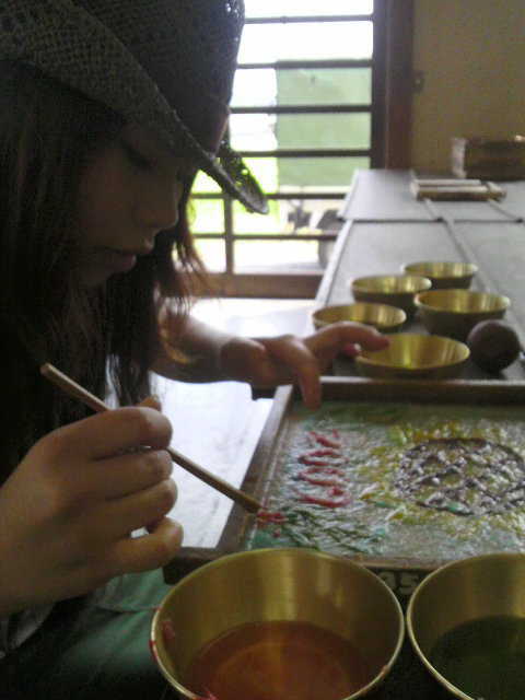 説明は難しいのですがハリガネのようなものを使ってφ(..)作業中は無言で集中してました…。久々に美術の授業のようでした〜★およそ1時間が経過!!絵付け終了(^o^)v乾燥まで時間がかかるため1週間以内に自宅に届くそうです♪♪楽しみ〜(^-^)vお値段も送料込みで1000円とリーズナブルで楽しめました(^-^)